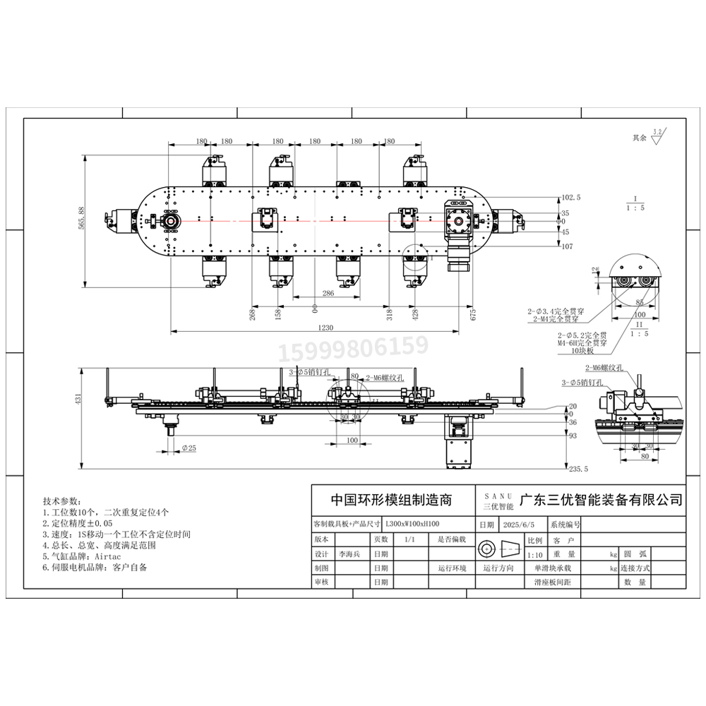 切步时间(未含客户的工装时间)1S移动一个工位