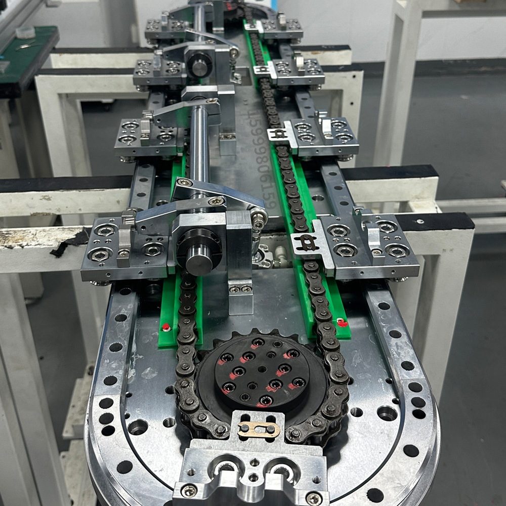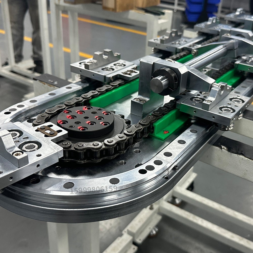 10个工位,4个重复定位工位垂直单轨环形导轨输送线
